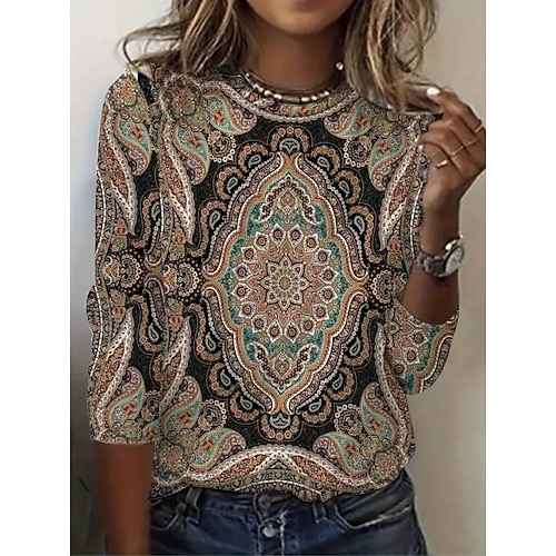 Per donna Maglietta Grafico Vintage Bohemien Vintage Moda Manica Lunga Girocollo Top Regolari Quotidiano Weekend Stampato Marrone Estate Primavera Autunno
