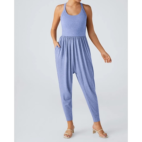 Per donna Normale Tuta Attivo Tinta unica Senza Maniche Gamba larga Girocollo Tasca Quotidiano Vacanza Vestibilità comoda Blu Nero Rosso Estate