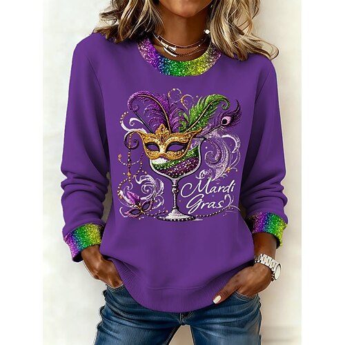 Per donna Felpa Pullover Felpe con cappuccio Grafico Blocco di colori Tinta a nodi Moda Casual Manica Lunga Girocollo Top Regolari Streetwear Abbigliamento Quotidiano Stampato Giallo Viola Verde