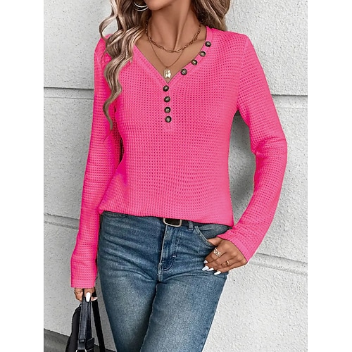 Per donna Blusa Tinta unica Elegante Casual Manica Lunga Scollo a V Top Regolari Quotidiano Bottoni Nero Bianco Fucsia Cachi Primavera Autunno Inverno