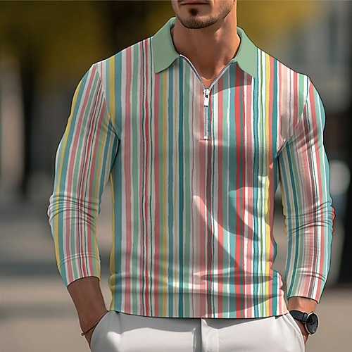 Per uomo Strisce verticali Polo Manica Lunga Collo ripiegato Moderno Tempo libero Sport Outdoor Athleisure Casual Quotidiano Cerniera Stampa 3D Primavera Autunno Inverno Nero Marrone Verde