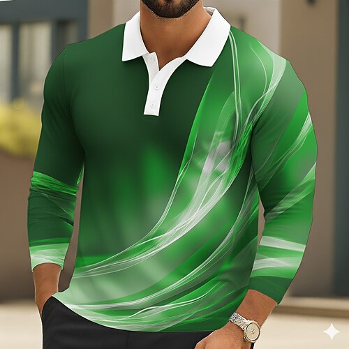 Per uomo Ombre Polo Manica Lunga Magliette polo Bavero Vintage Casual Athleisure Abbigliamento quotidiano Stampa 3D Bottoni Primavera Autunno Inverno Blu Arancione Grigio