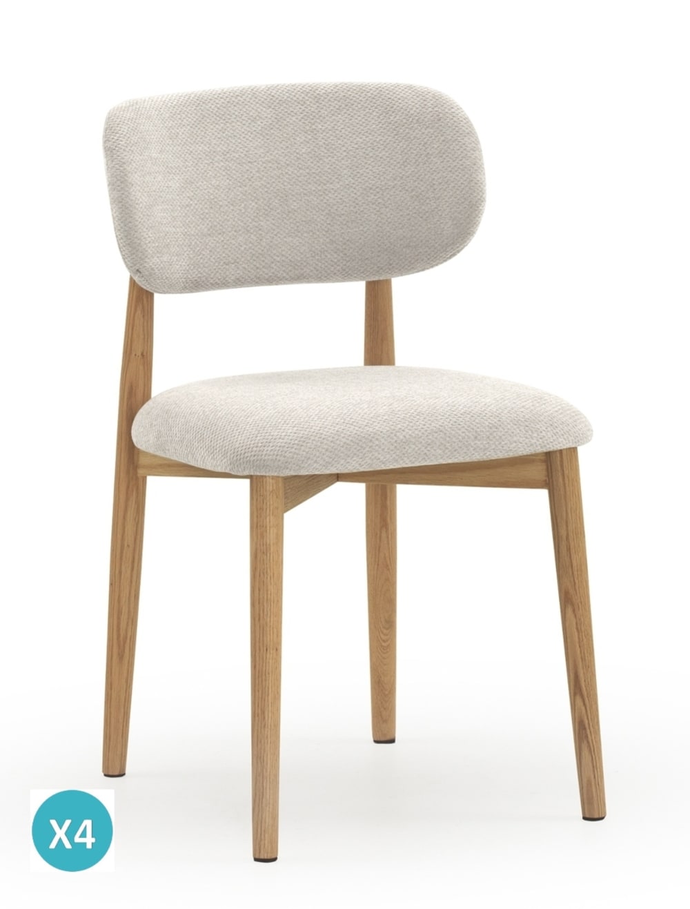 Set di 4 sedie in legno di quercia naturale imbottite in bianco