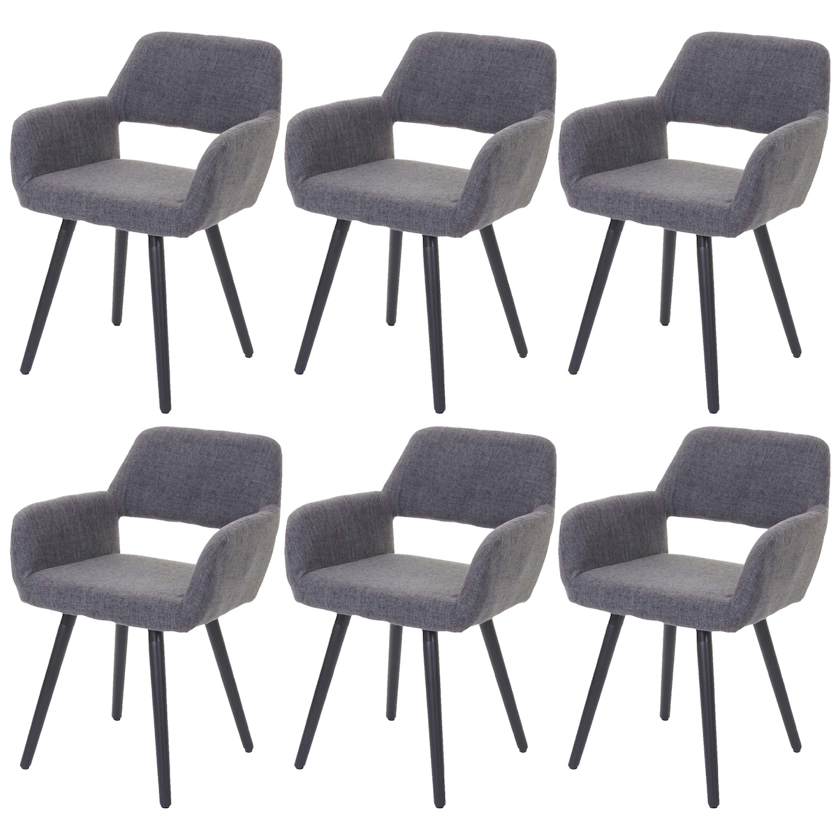 Mendler 6er-Set Esszimmerstuhl HWC-A50 II, Stuhl Küchenstuhl, Retro 50er Jahre Design ~ Textil, grau, dunkle Beine