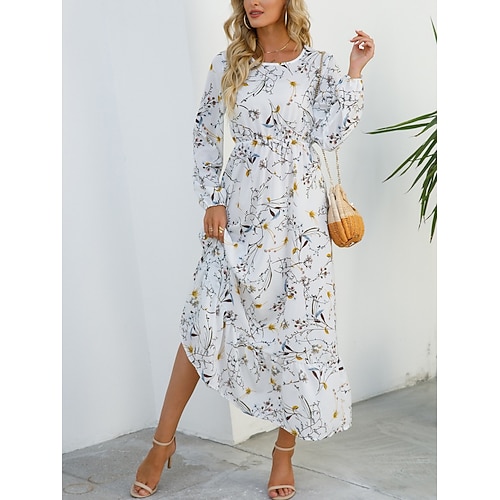 Per donna Abito maxi Abito a trapezio Vacanza Casual All'aperto Uscire Vestibilità comoda Floreale Manica Lunga Girocollo Blu blu navy Bianco Giallo Estate Primavera Autunno