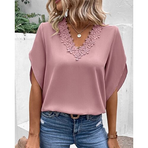 Per donna Blusa Semplice Elegante Manica 3/4 Scollo a V Top Regolari Quotidiano Ferie Uscire Patchwork Traforato Nero Bianco Verde chiaro Rosa Blu marino Primavera Autunno