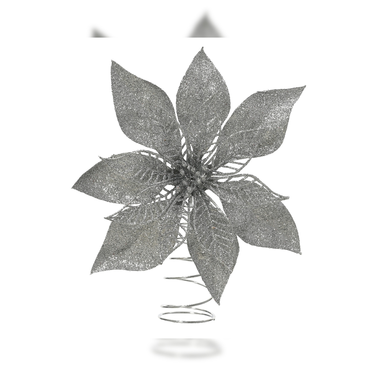 Christbaumspitze Weihnachtsstern mit Glitzer 22cm Kunststoff Silber