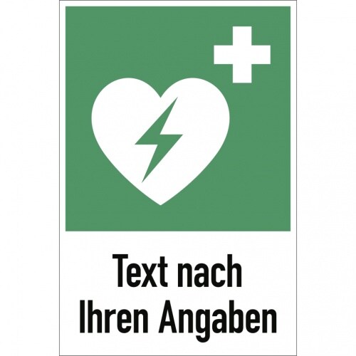 Dreifke® Schild, Automatisierter externer Defibrillator ISO 7010 mit Text n. Angabe,Alu,600x800mm