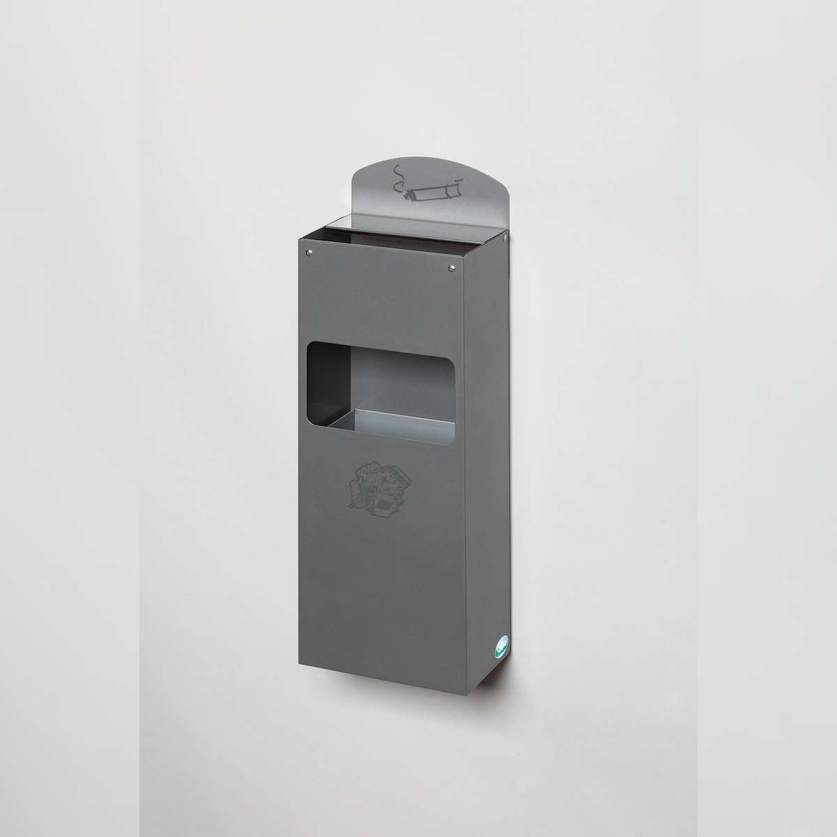 PROREGAL Robuster Wandascher mit Schild | 4 Liter, HxBxT 55x14,5x22cm | Verzinkter Stahl | Silber | Ascher Aschenbecher