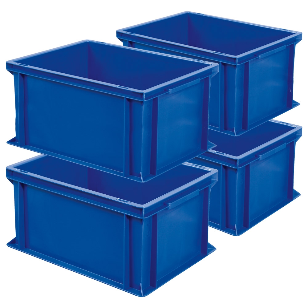 BRB 4x Eurobehälter mit 2 Griffleisten, LxBxH 400x300x220 mm, 21 Liter, blau
