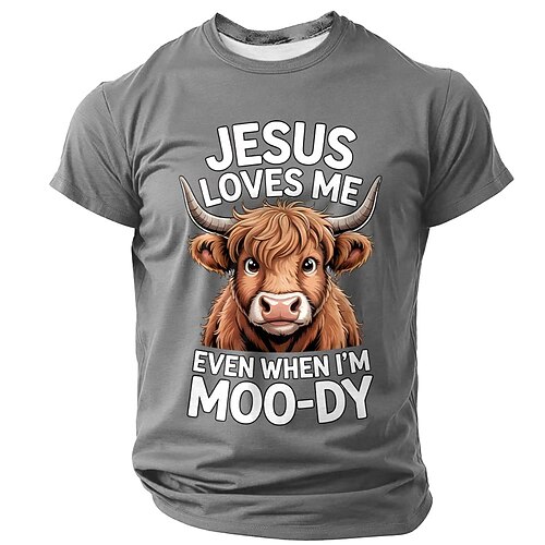 Gesù mi ama anche quando sono lunatico, maglietta divertente con mucca delle Highlands, gioco di parole religioso, maglietta grafica, animale carino, maglietta blu, abbigliamento, abbigliamento, s m l