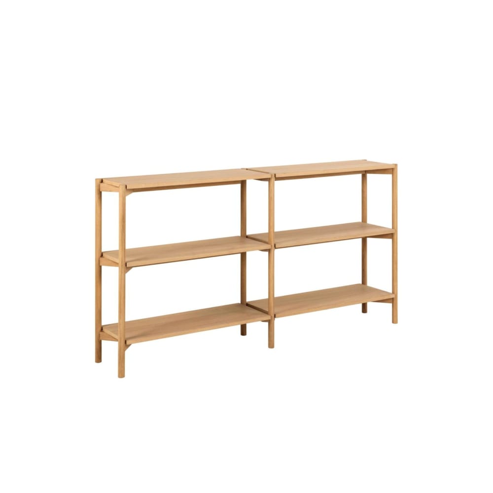 Bibliothèque basse scandinave en chêne clair 4 tablettes