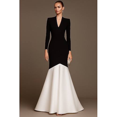 Linea ad A Sirena Tromba Lunghezza al pavimento Abiti da Ballo Abito da Sera Da principessa Abito formale Elegante Monocolore Abito Nero Manica Lunga Scollo a V Matrimonio Formale Crepe Elasticizzato