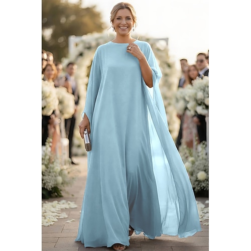 Linea ad A Tubino Colonna Lunghezza al pavimento Abito da invitata a nozze Abito Formale Abito da sera Abito da cerimonia per signora Manica Lunga Scollo a Barca Elegante Serata Formale Chiffon con