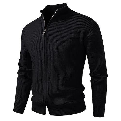 Per uomo Cardigan Maglione Corto Maglione con Zip Maglione a maglia A Coste Maglia Top Regolari Semplice Collo alla coreana Moda Classico Vacanza Abbigliamento quotidiano Abbigliamento Inverno Nero
