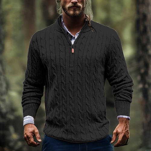 Per uomo Maglione Maglioni con zip a un quarto Maglione a maglia A Coste Maglia Top Regolari Lavorato a maglia Semplice Collo alla coreana Moda Casual Vacanza Abbigliamento quotidiano Abbigliamento