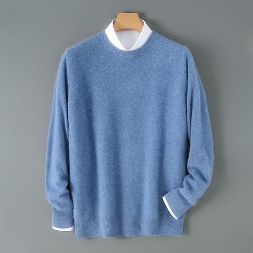 Per uomo Felpa Maglione di lana Maglione A Coste Maglia Top Regolari Lavorato a maglia Semplice Girocollo Moda Streetwear Casuale Abbigliamento quotidiano Abbigliamento Autunno Inverno Blu Cammello S