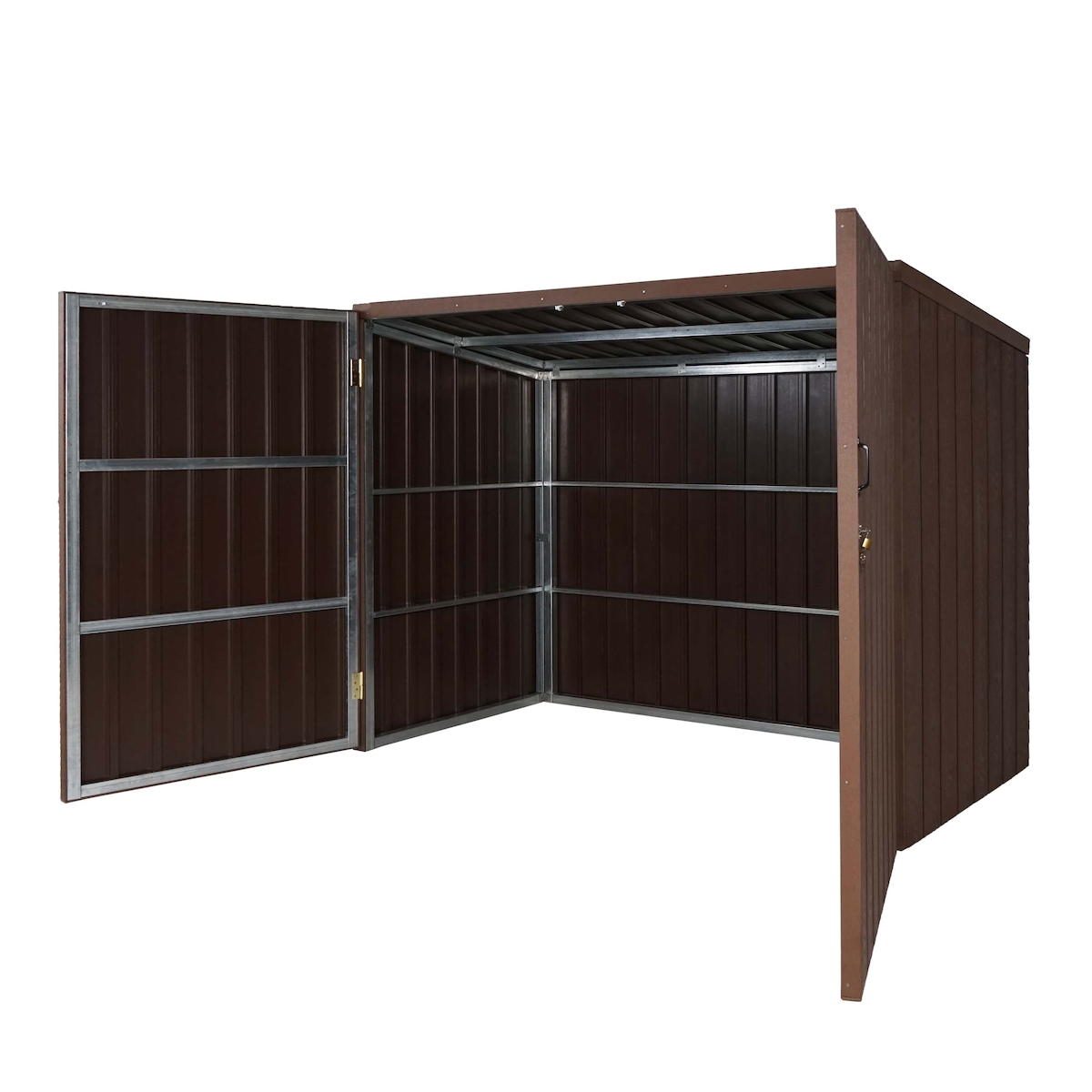 Mendler Mülltonnenverkleidung HWC-J29, Mülltonnenbox für Müllcontainer 660-770L, WPC Metall 172x213x112cm ~ braun