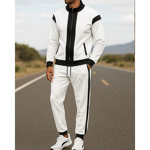Per uomo Felpa con zip Tute da ginnastica da salotto Tuta da 2 pezzi con tasca Blocco di colori Completo Abbigliamento Autunno Nero Bianco Escursionismo Lavoro All'aperto Manica Lunga Sport