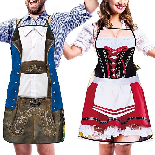 Carnevale Birra Oktoberfest 2 Pezzi Grembiule Costumi Divertenti Cameriera Coppia Oktoberfest Monaco di Baviera Wiesn Prati Coppia Per uomo Per donna Carnevale Festa della birra Panno in stile