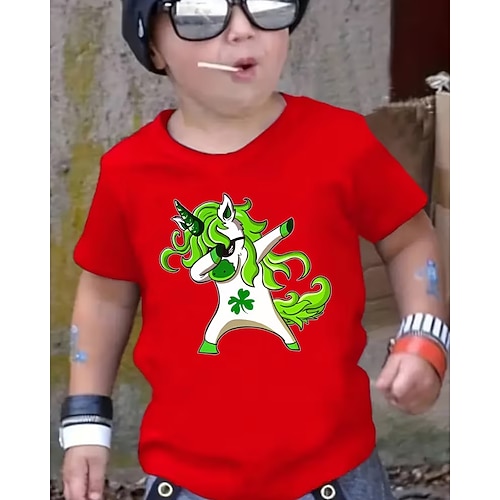 Cotone San Patrizio Bambini Ragazzi Nero Bianco Rosso Grafico Unicorno Maglietta Blusa Girocollo Manica Corta All'aperto Abbigliamento Quotidiano Moda Streetwear Designer Stampa Estate