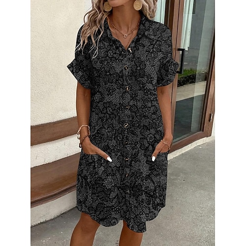 Per donna Mini Abito Abito Camicia Vestito Casual Abito Stampato Moda Moderno Quotidiano Spiaggia Weekend Vestibilità regolare Floreale Manica Corta Colletto a Camicia Nero Estate Primavera Autunno