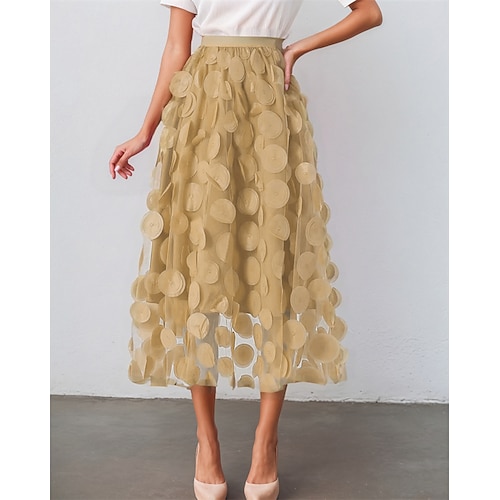 Per donna Taglia standard asiatici Linea A Gonne di garza Elegante Moda Midi Vita Alta Gonne Tinta unita Floreale Tulle Micro-elastico Riunione di famiglia Casual Quotidiano Aalbicocca Rosso bordeaux