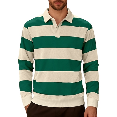 Per uomo Polo da Rugby Maglia da golf Lavoro Casuale Bavero Manica Lunga Essenziale Moderno A righe Bottoni Primavera Autunno Vestibilità regolare Blu marino Marrone Verde militare Polo da Rugby