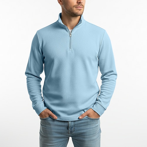 Per uomo Magliette Polo a Nido d'Ape Polo con zip a un quarto All'aperto Casual Zip a un quarto Manica Lunga Moda Moderno Tinta unica Testurizzato Lavorato a maglia Tutte le stagioni Vestibilit