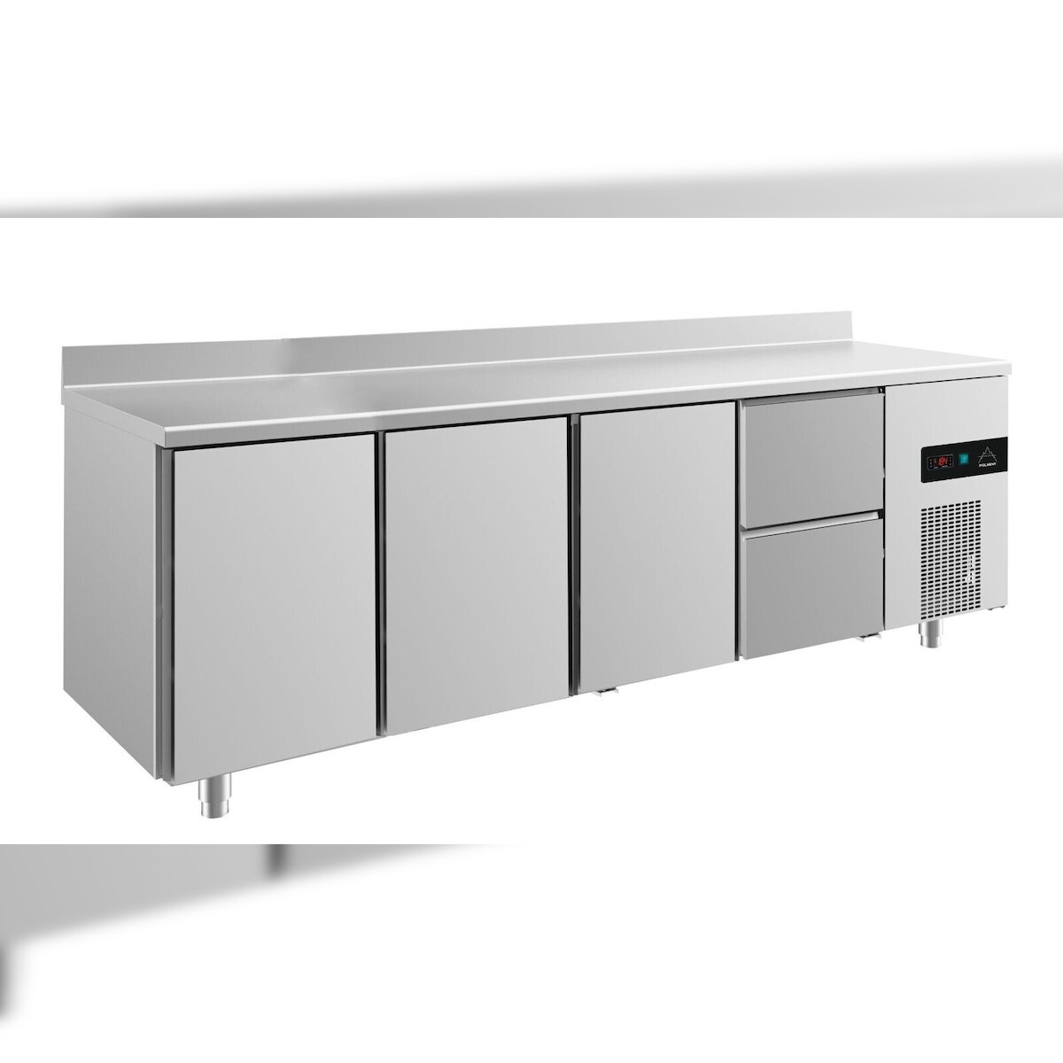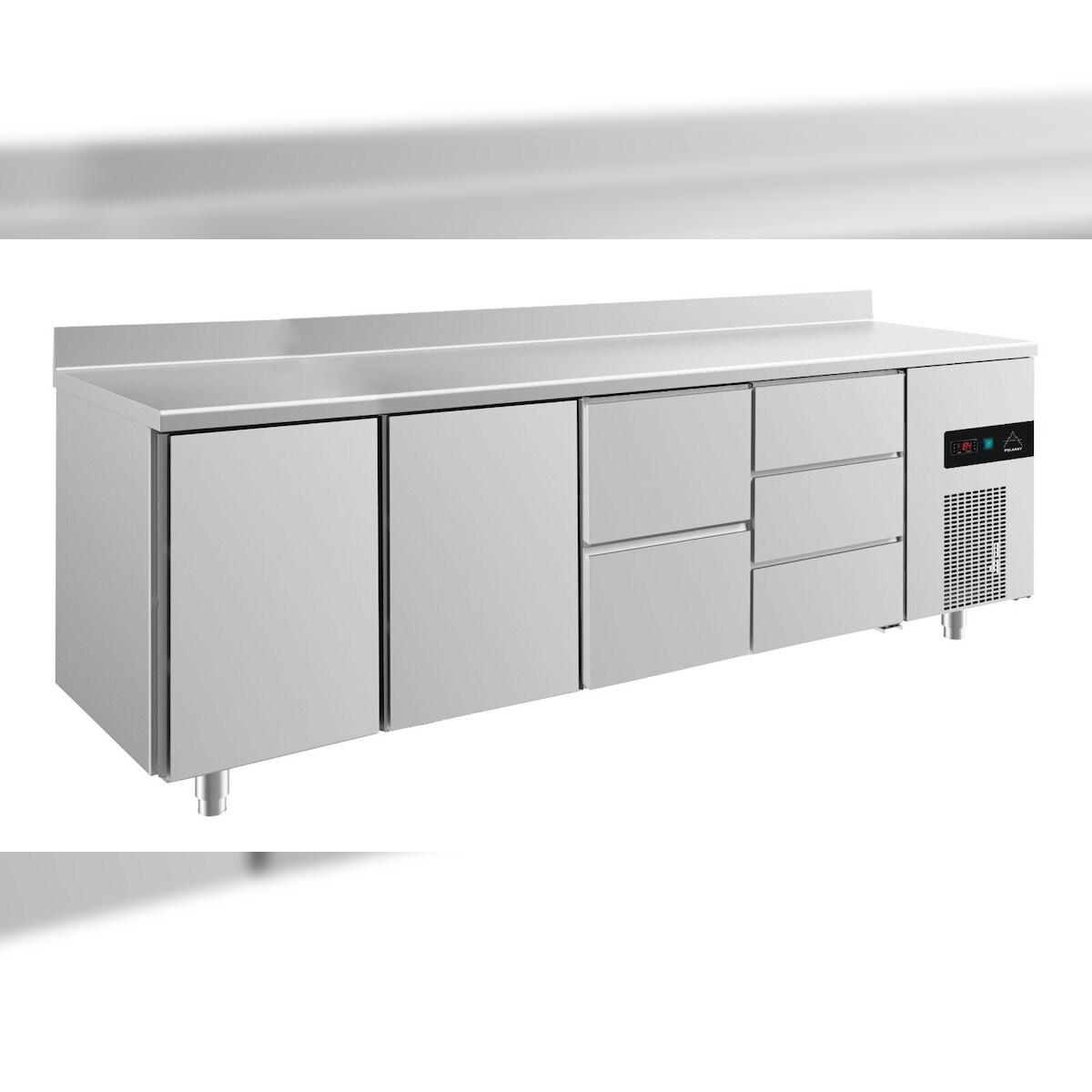A&S polarny Gastro Kühltisch 3 Türen links&mittig 2 Schubladen rechts Aufkantung, Umluftkühlung 2330x700x850mm -2/+8°C 632 l