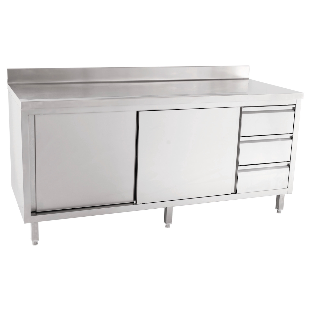 cookmax Arbeitsschrank mit Schiebetüren mit 100 mm Aufkantung Schubladen rechts