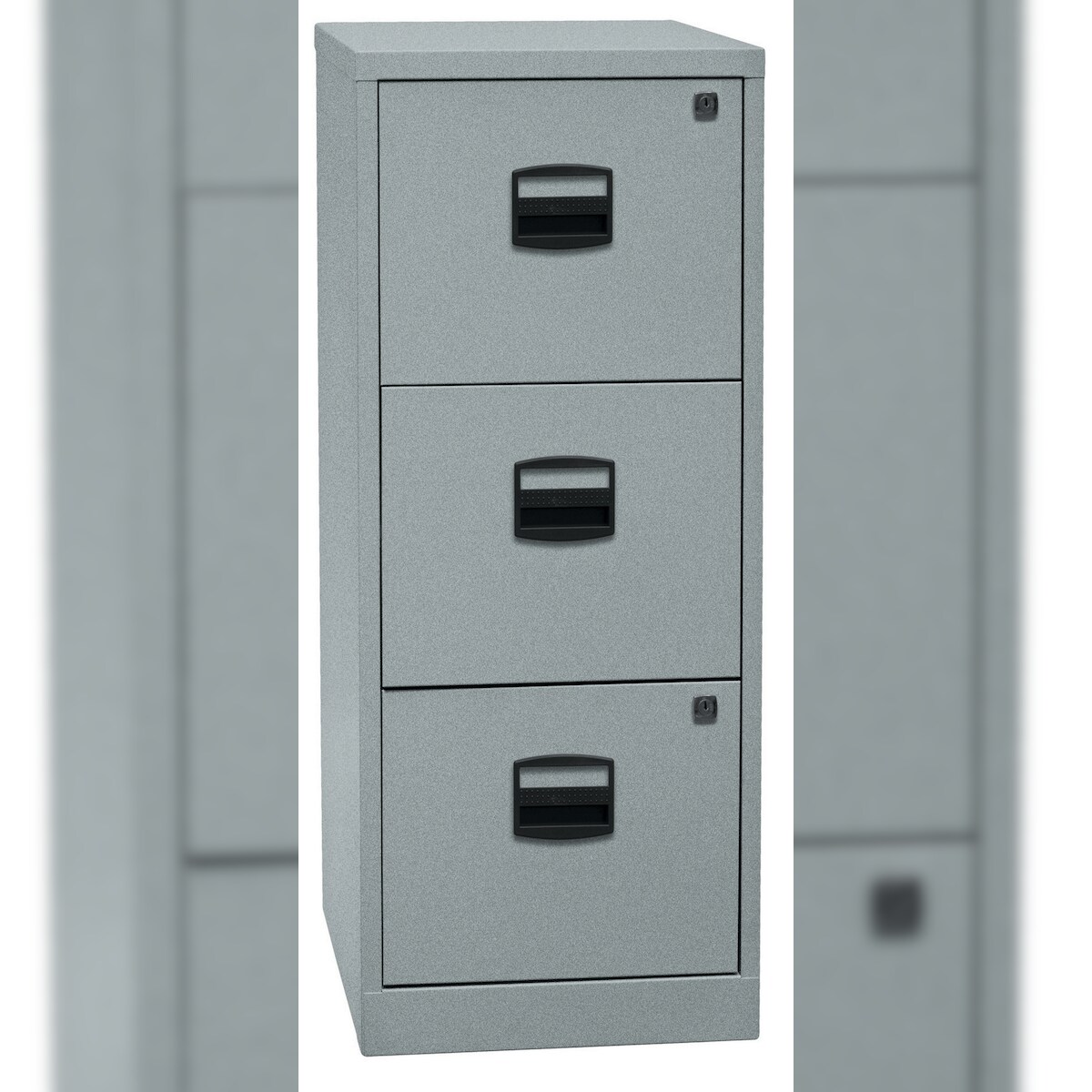 Bisley Home Hängeregistraturschrank mit Schloss aus Stahlblech, 3 Schubladen, einbahnig - Hängeregisterschrank abschließbar, Hängeregistratur für