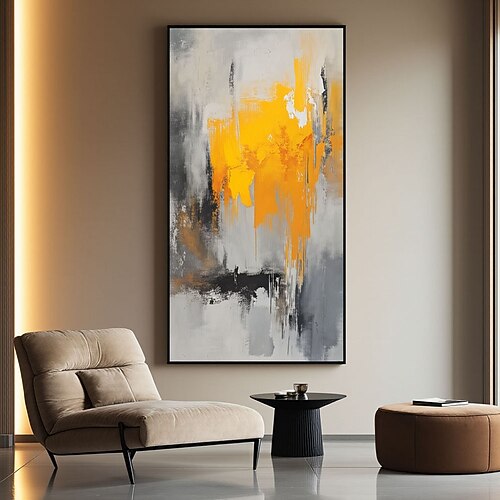 dipinto a olio fatto a mano moderno astratto su tela dipinto acrilico astratto giallo nero dipinto grigio bianco quadro da parete extra large arte da parete per soggiorno