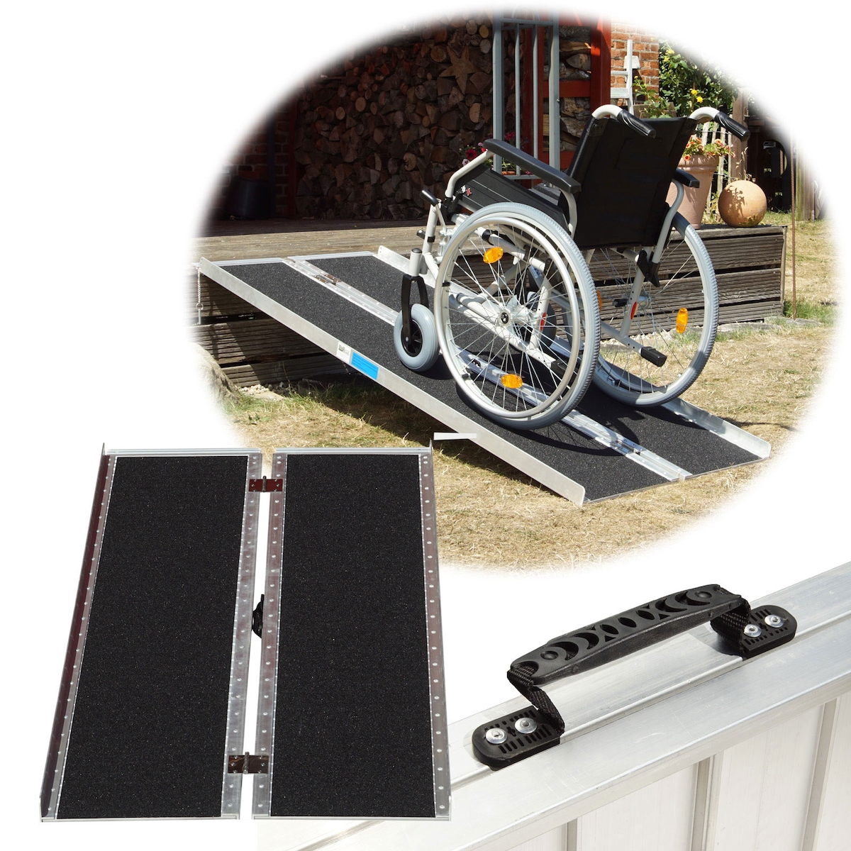 TRUTZHOLM Rollstuhlrampe klappbar 213 cm Traglast 272 kg Alu grau schwarz beschichtet Auffahrrampe