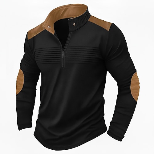Per uomo Maglietta Manica Lunga Colletto Mao Primavera Autunno Blocco di colori Moda Designer Retrò Vintage Con zip Pieghettato Vacanza Streetwear Uscire Nero Blu marino Cachi Maglietta Top per Uomo