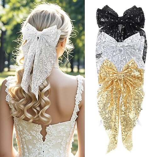1 pz fiocco glitterato clip paillettes accessori per capelli da festa per donne adolescenti ragazze bambini