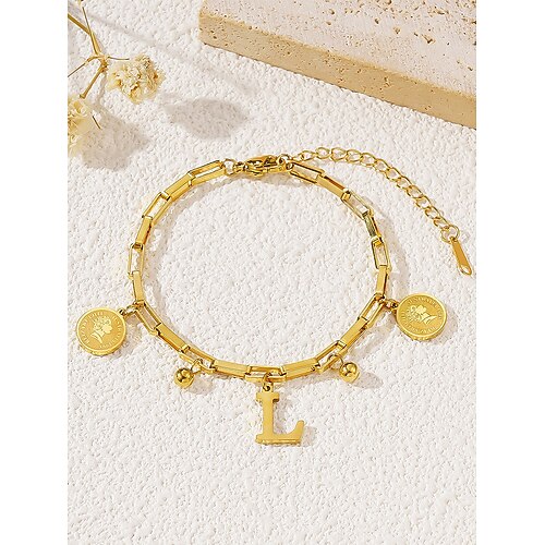 Bracciale da donna placcato in oro con lettere dell'alfabeto, ciondoli a forma di moneta e pallina, catena regolabile, elegante regalo di Natale per lei, accessorio di gioielleria personalizzato