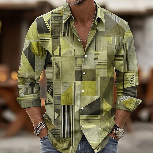 Per uomo Geometrico Blocco di colori Patchwork Camicia Camicia con Bottoni Manica Lunga Vintage Retrò All'aperto Casuale Ferie Primavera Autunno Collo ripiegato Stampa 3D camicie con colletto Blu