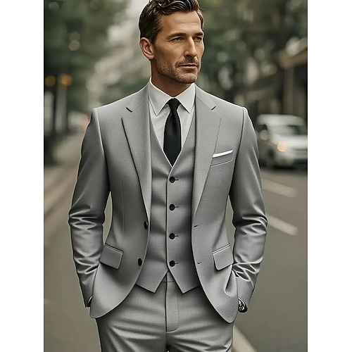 Uomo Matrimonio Completi Dentellato Nero Blu marino Affari Abbigliamento da lavoro Tinta unita Vestibilità aderente 2 pezzi Monopetto Due Bottoni