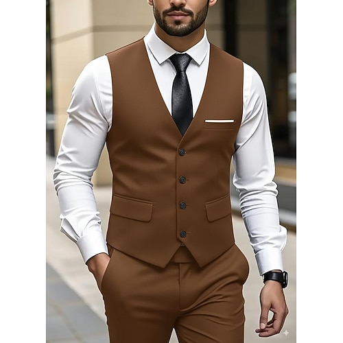 Uomo Matrimonio Abiti da sposa Bavero classico Nero Borgogna Abito Tinta unita Vestibilità standard 3 pezzi Monopetto Due Bottoni