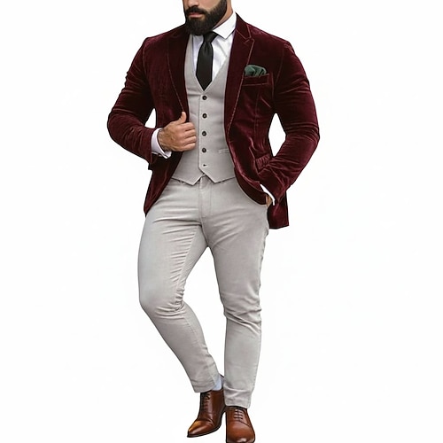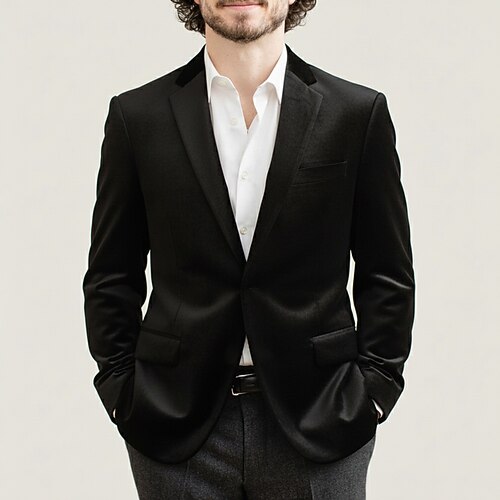 Per uomo Blazer di velluto Colletto ad incastro Moda Classico Casual Tinta unita Blazer di velluto Nero Borgogna Blu scuro Vestibilità su misura Monopetto Un Bottone