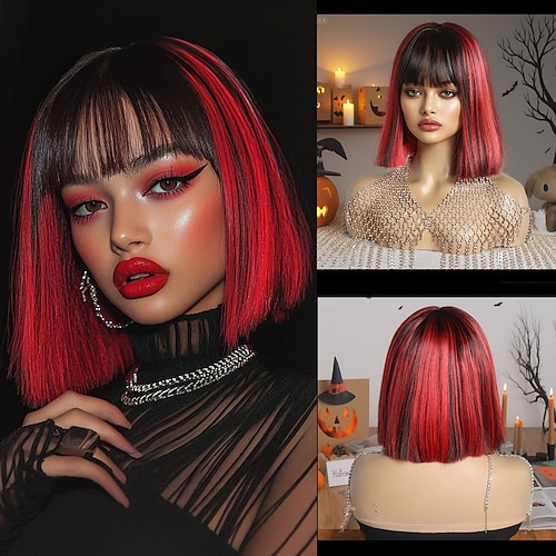Parrucca Sintetica Liscio Liscio naturale Riga centrale Frangia Dritta Parrucca 12 pollici Nero - rosso Capelli Sintetici 12 pollice Per donna Morbido Comodo Colori Misti