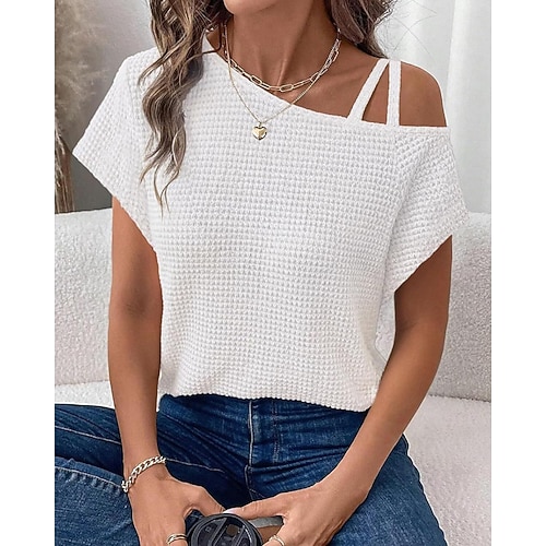 Per donna Camicia Elegant Elegante Raso/Satin Semplice Moda Moderno Manica Corta Girocollo Top Regolari Quotidiano Uscire Blu Nero Vino Rosso Estate