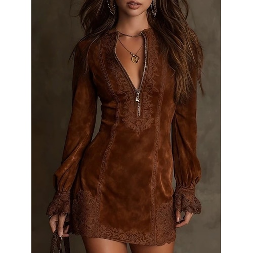 Per donna Mini Abito Vestito Casual Abito da Cocktail Abito aderente Abito in finta pelle scamosciata Elegante Moda Moderno All'aperto Vacanza Uscire Vestibilità regolare Semplice Manica Lunga Collo