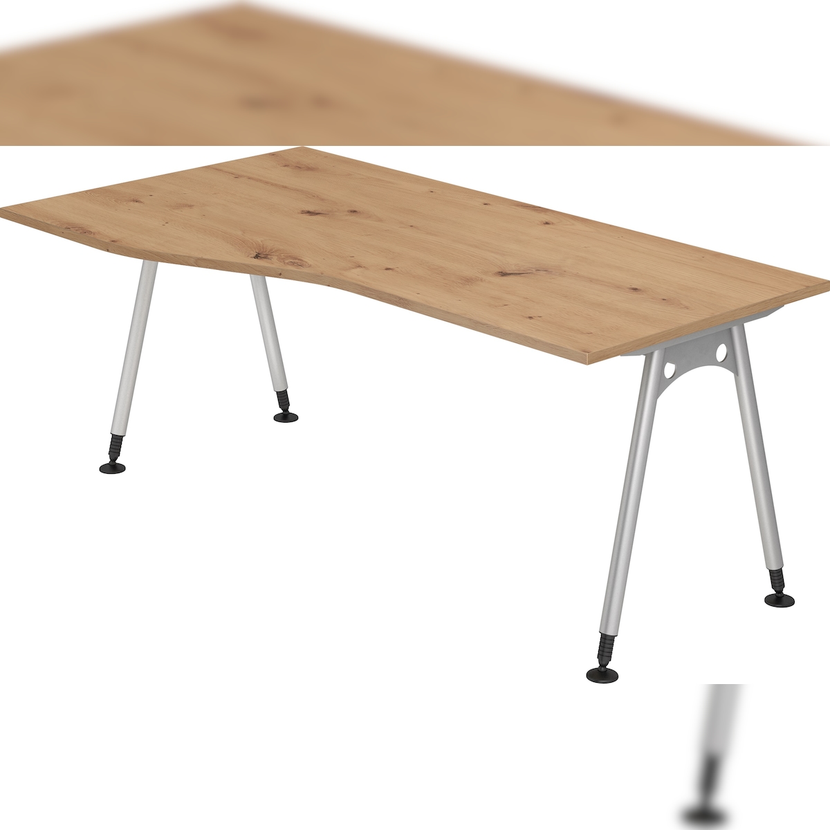 bümö manuell höhenverstellbarer Schreibtisch 180x80 in Asteiche, Gestell in graphit/alu - PC Tisch höhenverstellbar & groß, höhenverstellbarer Tisch