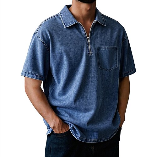 Per uomo Polo Polo con zip a un quarto Abbigliamento quotidiano Data Zip a un quarto Manica Corta Moda Essenziale Semplice Cerniera Tasca Estate Vestibilità regolare Nero Rosa Blu Viola Marrone Verde