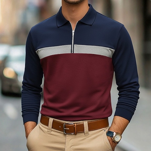 Per uomo Polo in misto cotone Polo con zip a un quarto Casuale Vacanza Zip a un quarto Manica Lunga Moda Essenziale Blocco di colori Tasca Inverno Primavera Autunno Autunno Inverno Vestibilit