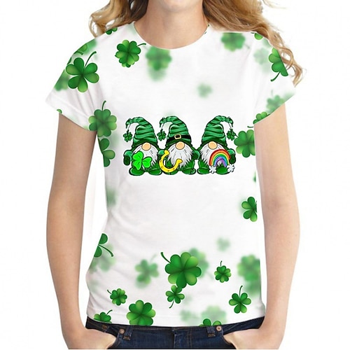 Per donna maglietta Trifoglio Festa di San Patrizio Informale Verde primavera Bianco Verde chiaro Stampa Manica corta Di tendenza Rotonda Standard Primavera estate