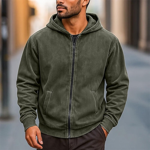 Per uomo Felpa con cappuccio Felpa con cappuccio a zip intera Nero Verde militare Verde Grigio Con Cappuccio Semplice Con zip Sport Outdoor Casuale Quotidiano Streetwear Cool Abbigliamento Sportivo
