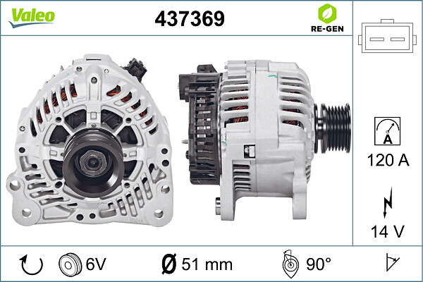 VALEO Generator REMANUFACTURED PREMIUM 437369 14V 120A für SKODA VW SEAT AUDI FORD 21903017B 071903023A 28903025RX